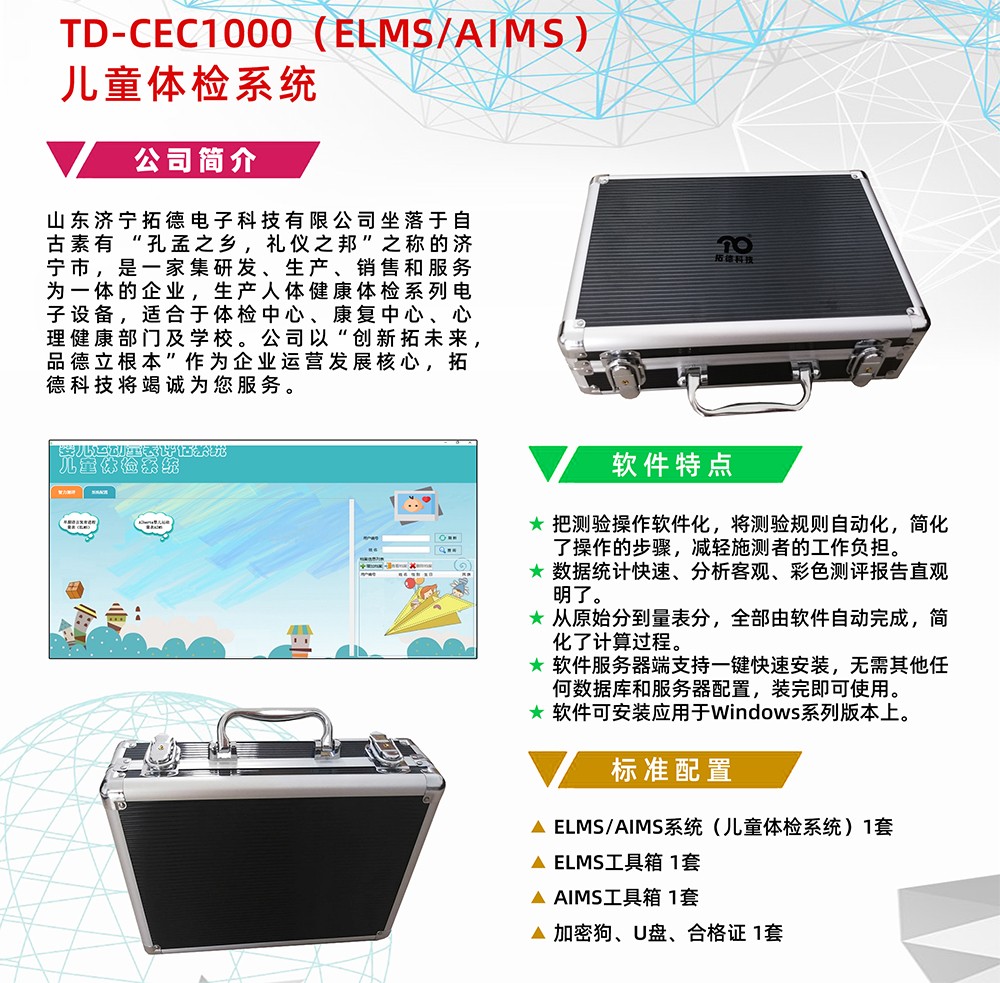 1、ELMS/AIMS系统(儿童体检系统) 1套